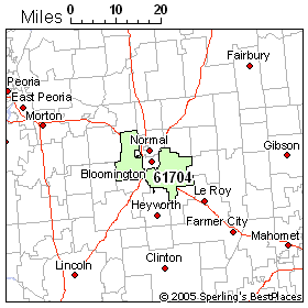 Zip code boundary map zip code 61705 bloomington illinois nearest zip codes. 36 301 zip code population in 2010. 61710 bloomington il 61701 bloomington il 61709 bloomington il 61704 bloomington il 61761 normal il 61705 bloomington il 61772 shirley il 61776 towanda il 61748 hudson il 61745 heyworth il 61736 downs il 61725 carlock il. Zip code 61704 is located in central illinois and covers a slightly less than average land area compared to other zip codes in the united states.